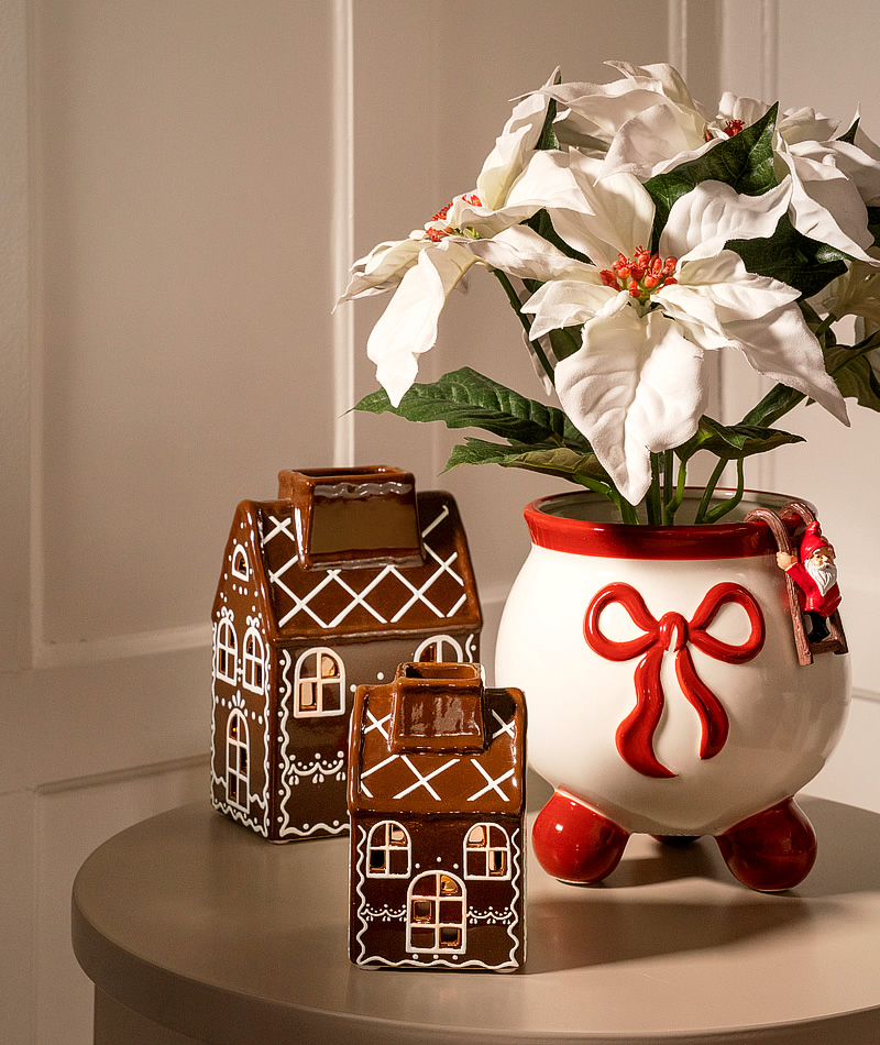 Den lilla tomten som hänger på krukan är ju bara för söt, likaså tycker jag pepparkakshusen är fina. Jag fick ett underbart fint pepparkakshus från Konstsmide i julklapp av föräldrarna för ett par år sedan, och nu har jag fått hit det hem till mig äntligen, så det ska bli mysigt att få pynta med här hemma sedan när det nalkas.