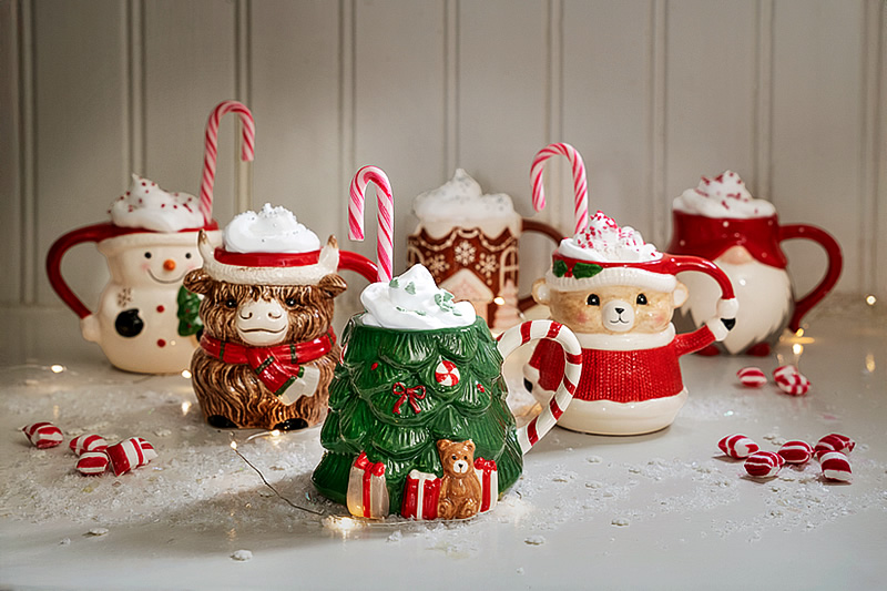 Gulliga bulliga julmuggar så det står härliga till! Det har ju blivit väldigt populärt med så kallade chokladbarer, alltså som en installation på köksbänken där man samlar muggar och tillbehör till varm choklad på en liten hylla och låter det stå framme, likt ett gottebord, och sådana här stora muggar är typiska för den trenden.