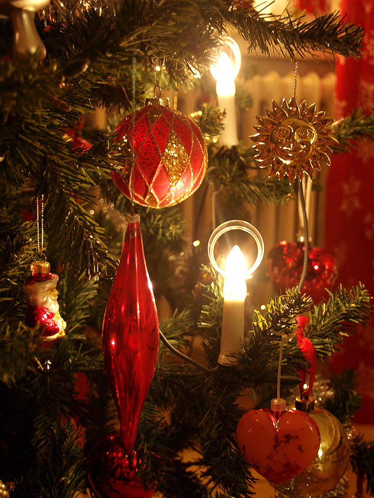 Till sist en närbild på lite julgranspynt i julgranen, vilket är något jag älskar. Ju fler olika slags julgranspynt tillsammans desto bättre. Det är inte alltid helt lätt att hitta ett bra ställe att fota i granen, för det är så många komponenter att ha i åtanke. Dels vill man ju gärna ha med julgransbelysning om det går, dels vill man ju få med något pynt man kanske tycker är extra fint, dels måste de ju faktiskt synas ordentligt och inte hamna i motljus (vilket är lätt hänt), dels vill man gärna få med julgranspynt i bakgrunden också så att bilden får ett någorlunda djup och dels vill man ju framför allt få till en skarp bild (vilket inte är helt lätt utan stativ).